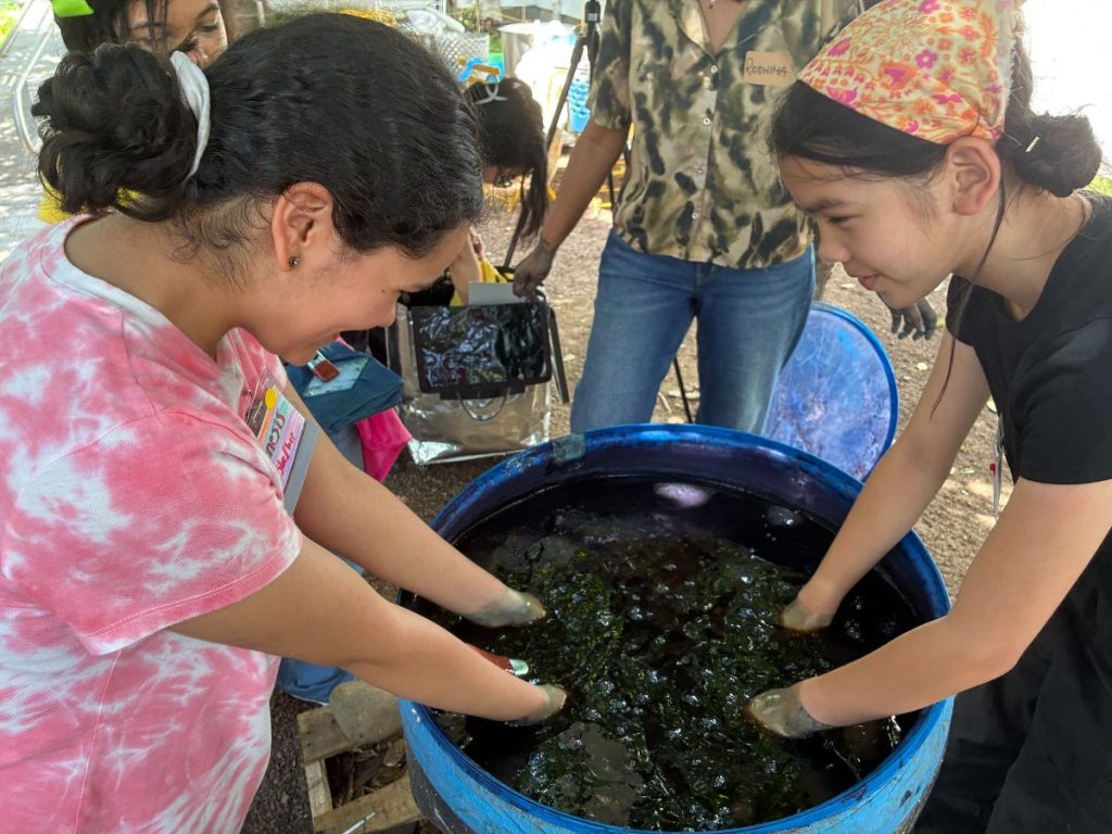 As part of our continuing partnership with Pratt Institute, our middle school Summer Camp visited the Pratt Textile Dye Garden, where they explored themes of connection and transformation that are present in Octavia Butler’s works. Through this hands-on workshop they learned about the global history of indigo, engaged with three fiber artists-in-residence, and used resist dyeing techniques to make their own indigo dyed bandanas.